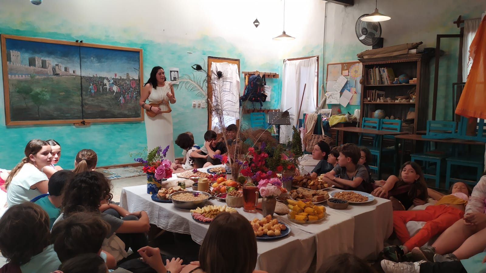 Cerrando la época de Roma, un grupo de madres y padres nos ayudó a preparar un verdadero festum romano para los niños y niñas de sexto grado. Fue una hermosa sorpresa que disfrutamos mucho. Incluso nos recibió una diosa romana con la lira.