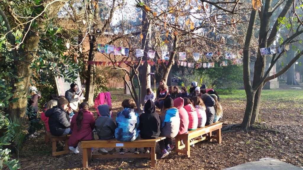 Y ellos ponen todo de sí. El encuentro humano es la prioridad. El calor del encuentro, los fogoncitos en el parque, las bolsas de agua caliente, maestros que nos transformamos en cuenco y pared poniendo el cuerpo y el corazón. Todo esto… puede más que el frío.