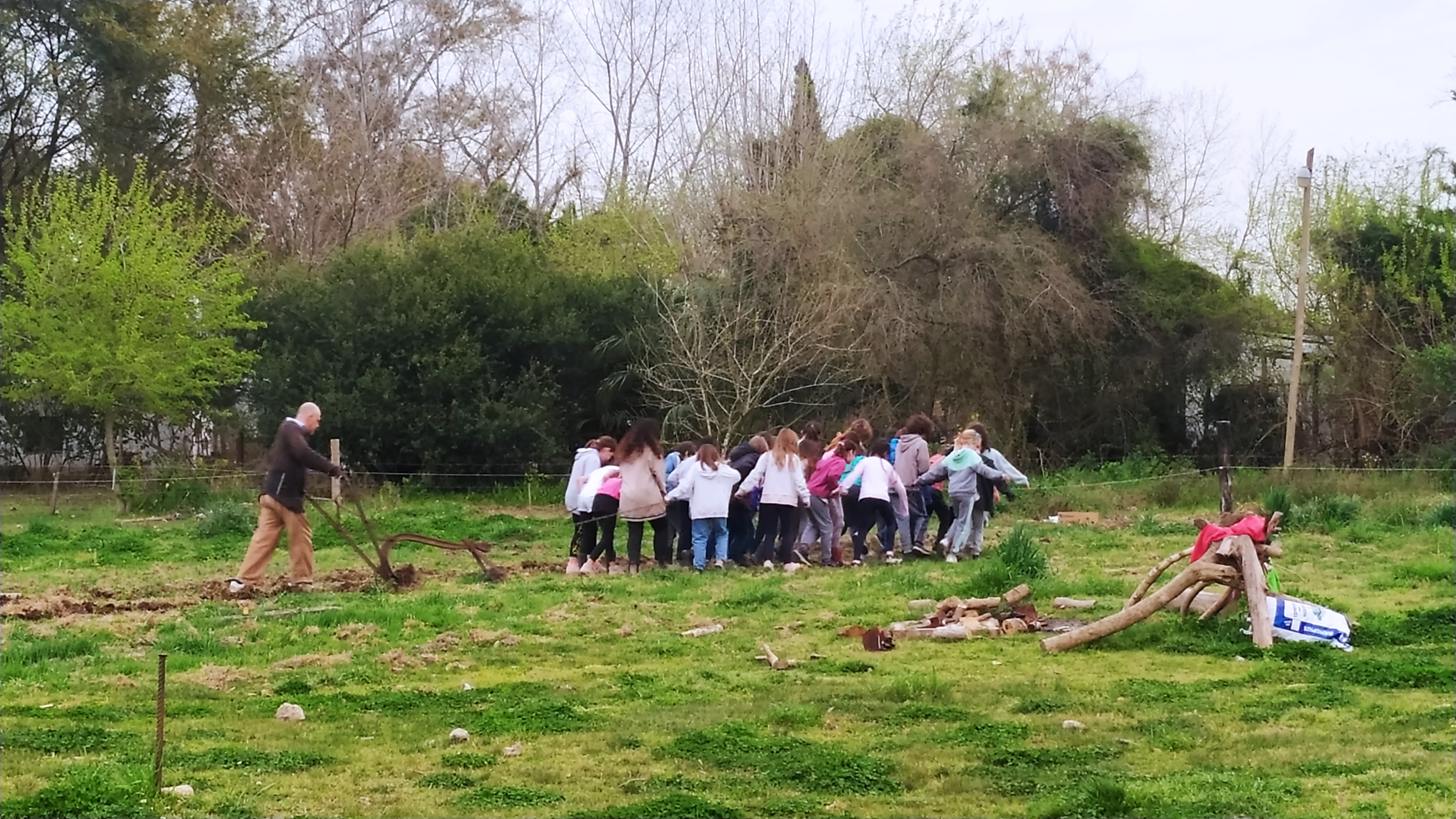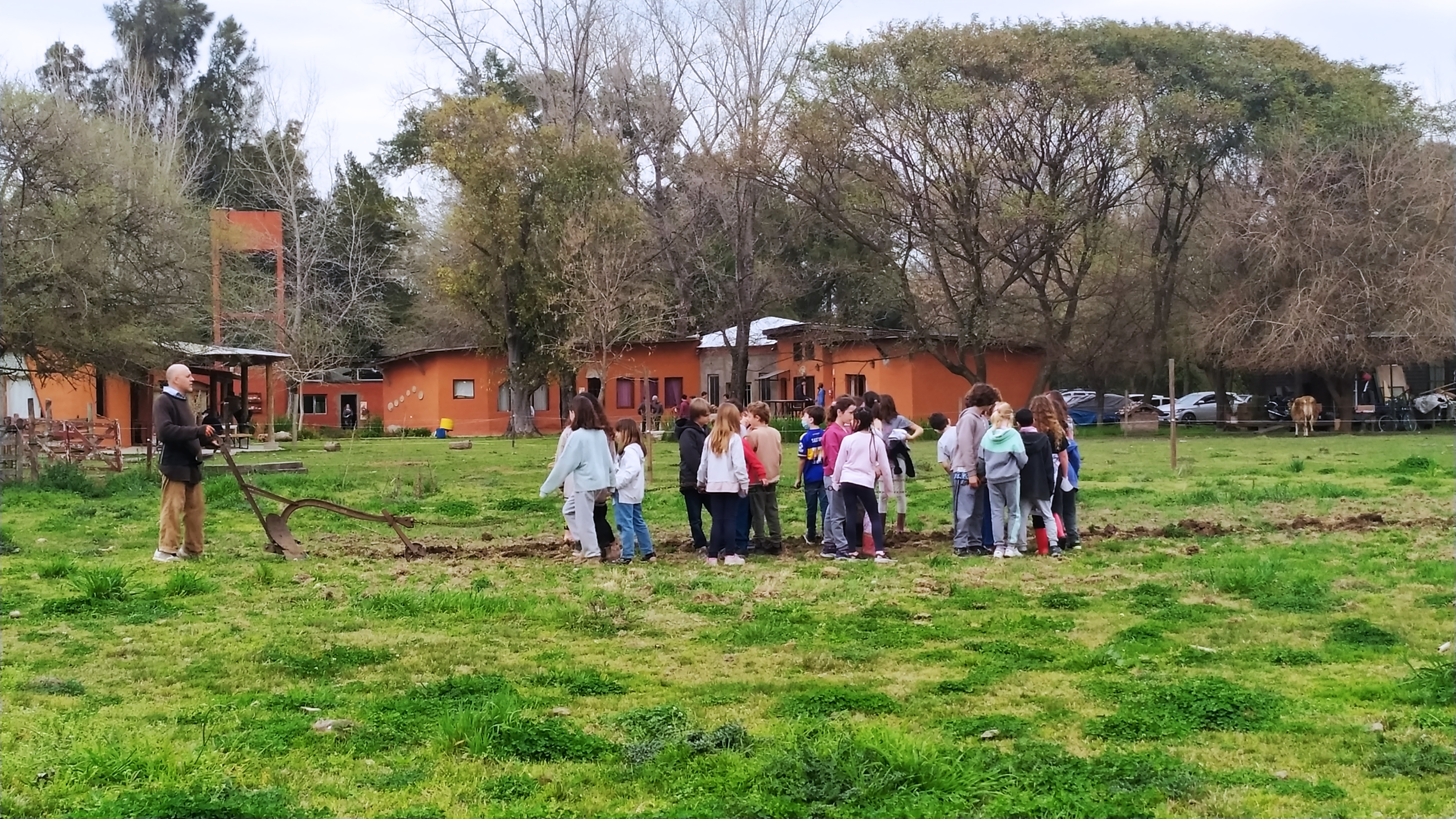 También debido a la Pandemia, el año pasado, no pudimos sembrar en la escuela. Cada uno y cada una sembró el trigo en casa y luego juntamos todas las cosechas para la trilla y la molienda. Ahora en cuarto grado, empezamos a arar la tierra en la escuela. Tirar del arado es una experiencia inolvidable, formativa, en la cual todos tenemos que poner un pequeño esfuerzo para lograr el objetivo.