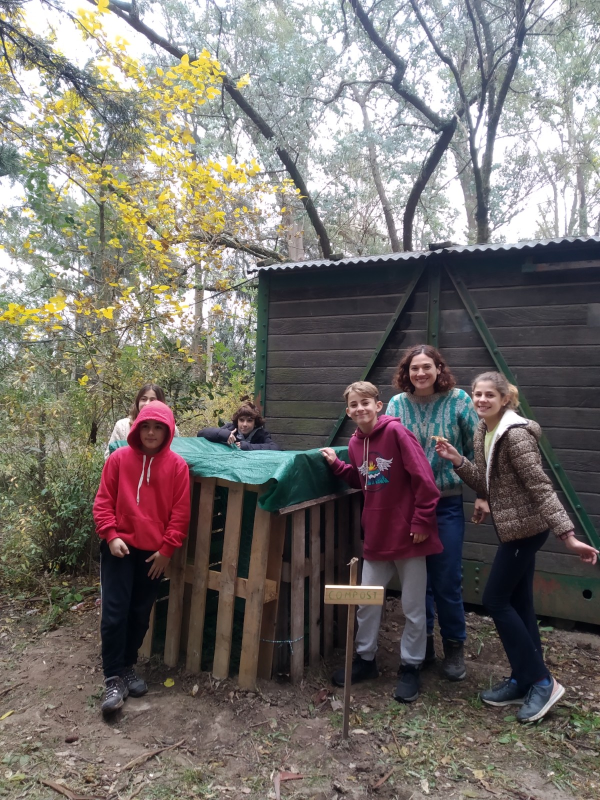 Jóvenes de Séptimo Grado, en una jornada construyeron gran una compostera para primaria.
