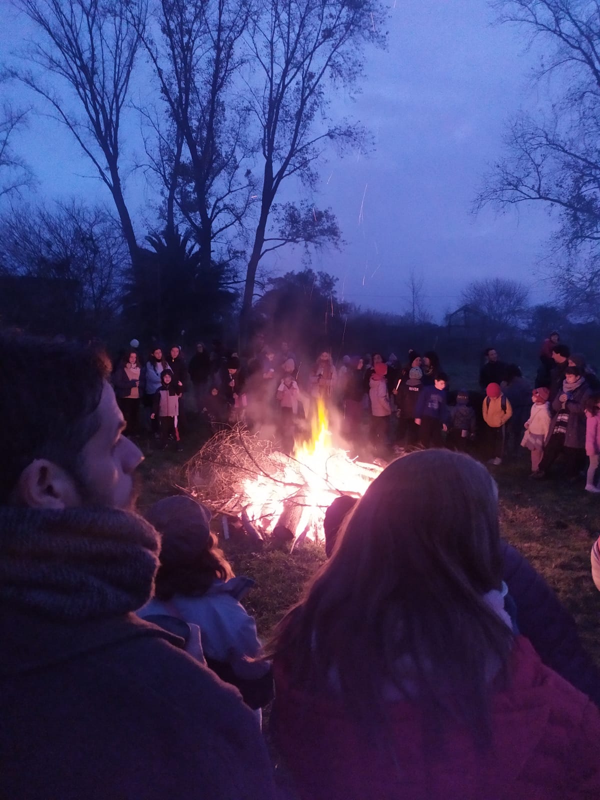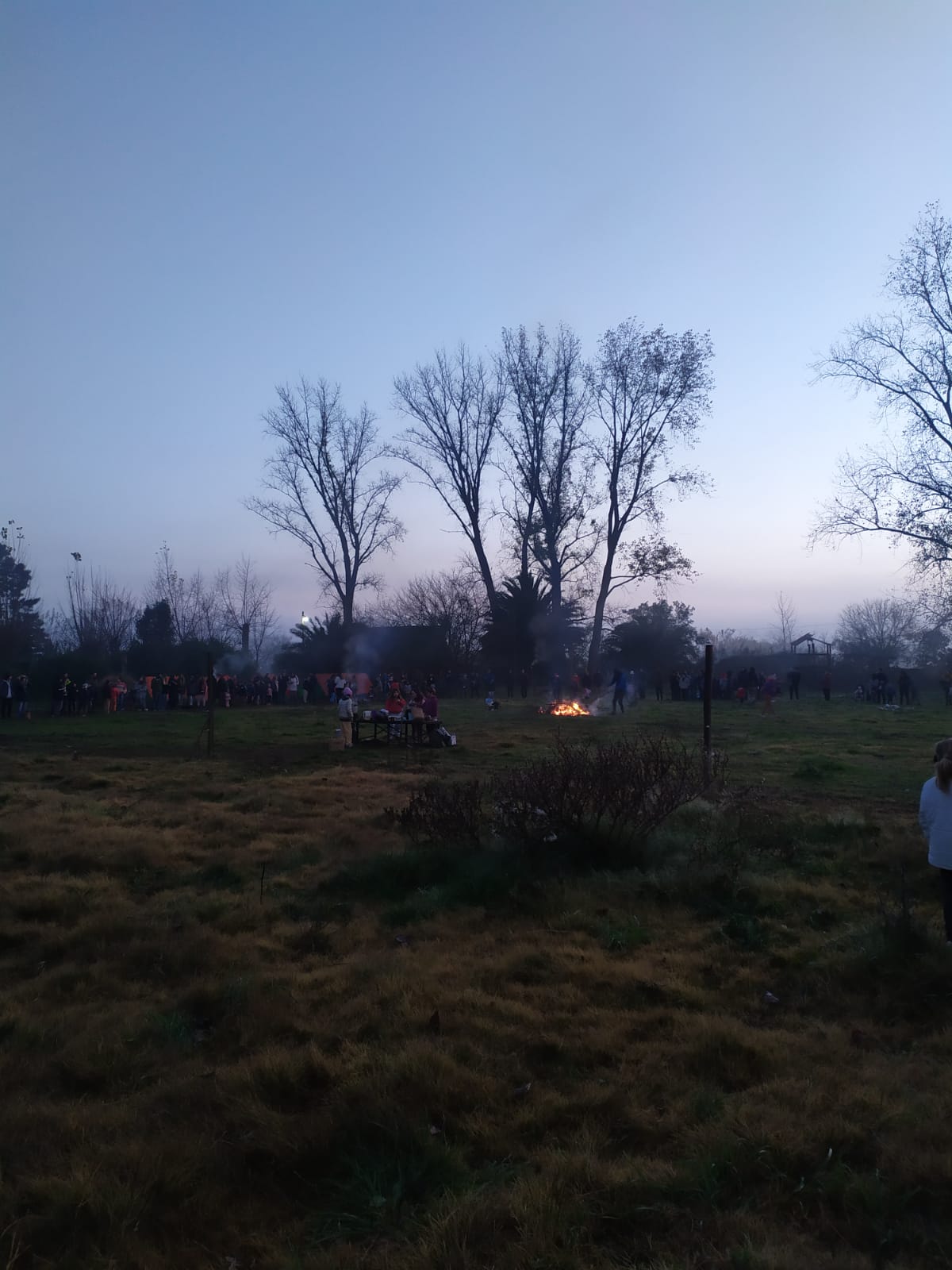 Niños y niñas de séptimo grado, durmieron en la escuela para esperarnos con el fuego encendido tempranito a la mañana. Así festejamos que ha pasado la noche más larga, y poquito a poquito volverá la luz.