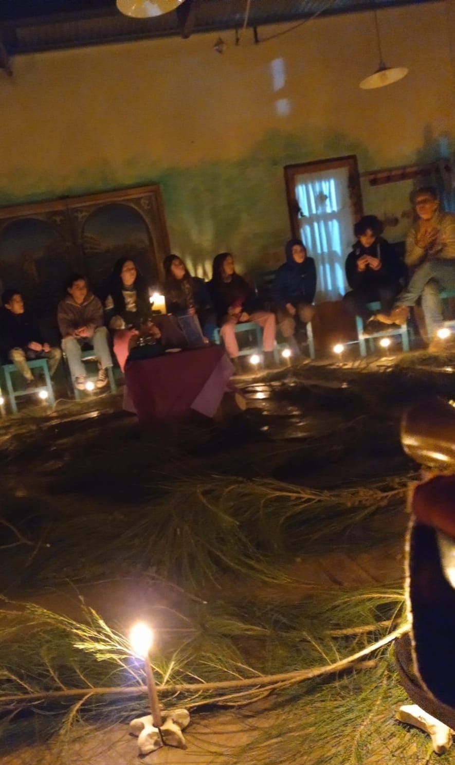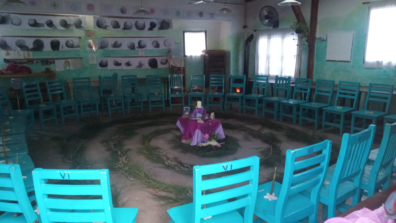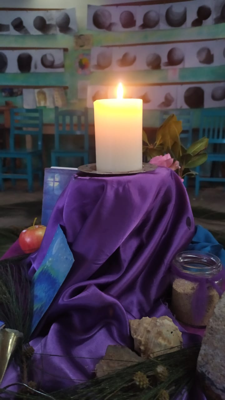 Es por esto que celebramos esta fiesta con una luz central, como imagen de LA LUZ a la cual todos los seres humanos estamos llamados a buscar en lo profundo de nuestro ser, esa fuente Crística de amor que nos une y nos hermana. Los niños y niñas llegan a esta luz central por un camino en forma de espiral marcado en el suelo con ramas, llevando consigo la vela hecha con sus propias manos, que será encendida con la luz central en el interior de la espiral. Así, el salón que estaba oscuro se ilumina con la luz de cada niño y de cada niña.