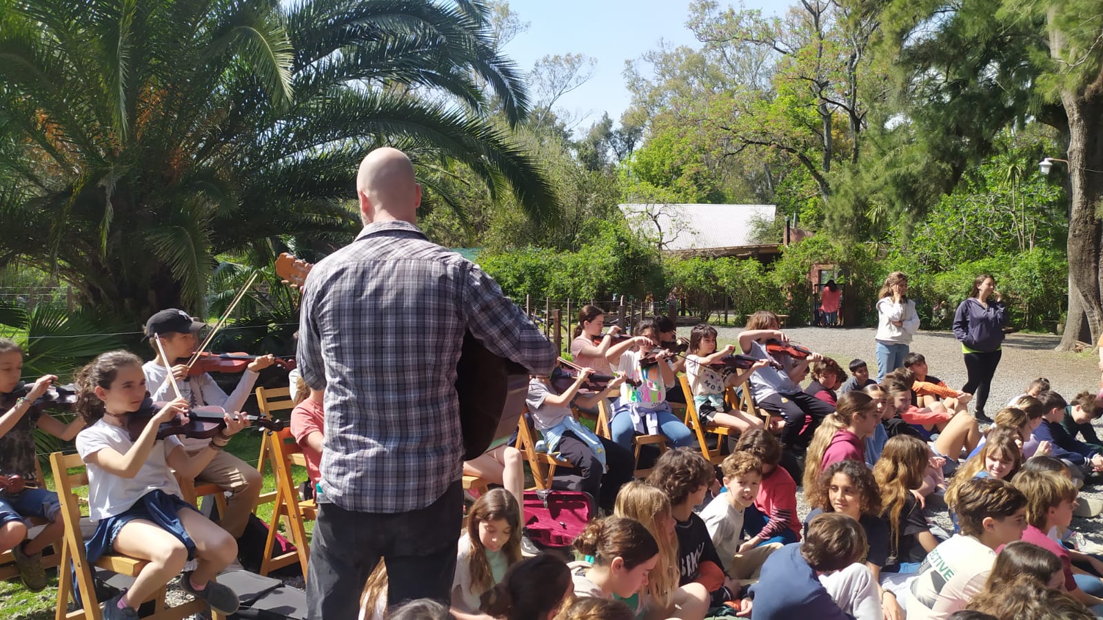 Como todos los 29 de septiembre, todos los niños, niñas y jóvenes de la escuela nos reunimos a escuchar un cuento y cantar juntos. En esta ocasión, el grupo de violinistas de cuarto, quinto y sexto nos acompañaron con su música, dirigidos por el maestro Diego.