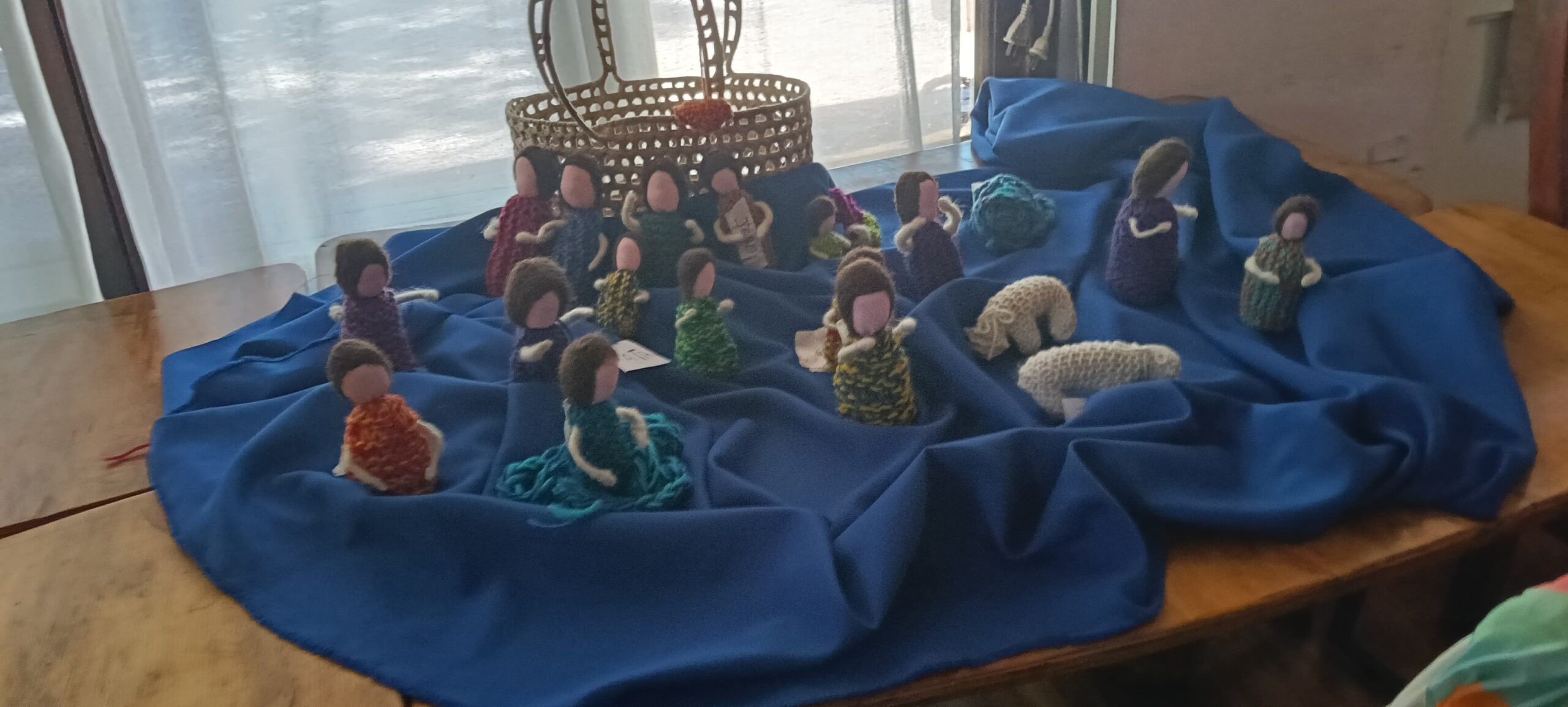 (en la foto, los pastores tejidos en primer grado con la maestra Viviana)
